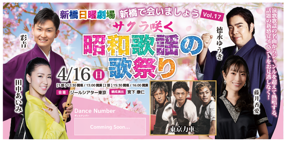 | イベント名 | 新橋日曜劇場 新橋で会いましょうVol.17 サクラ咲く 昭和歌謡の歌祭り |